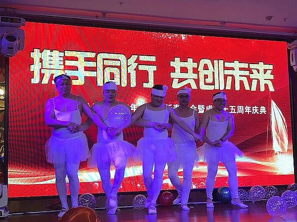 活動(dòng)中,審計(jì)部、評(píng)估部、基建部及辦公室的參演人員相繼踴躍登臺(tái),為大家獻(xiàn)上精彩紛呈的表演?;ú康囊磺侗寂堋藩?dú)唱,贏得臺(tái)下年輕人的喝彩和共鳴,讓大家感受到了天華所年輕一代員工斗志昂揚(yáng)的氣場和積極進(jìn)取的精神面貌。小品《土豪交友大會(huì)》、搞笑芭蕾舞《小天鵝》、《舞蹈串燒》等節(jié)目,形式生動(dòng)活潑,內(nèi)容豐富多彩,也贏來臺(tái)下陣陣喝彩聲和歡笑聲。詩歌朗誦《這一年 那一年 天華15年》則回顧了天華公司15年來走過的不平凡歷程,展示了廣西天華公司員工團(tuán)結(jié)奮斗的寶貴精神財(cái)富。在文藝表演的節(jié)目間隙,活動(dòng)穿插抽獎(jiǎng)環(huán)節(jié),使得整個(gè)年會(huì)暨慶典活動(dòng)輕松活潑又高潮迭起,歡聲笑語不斷,氣氛融洽祥和。