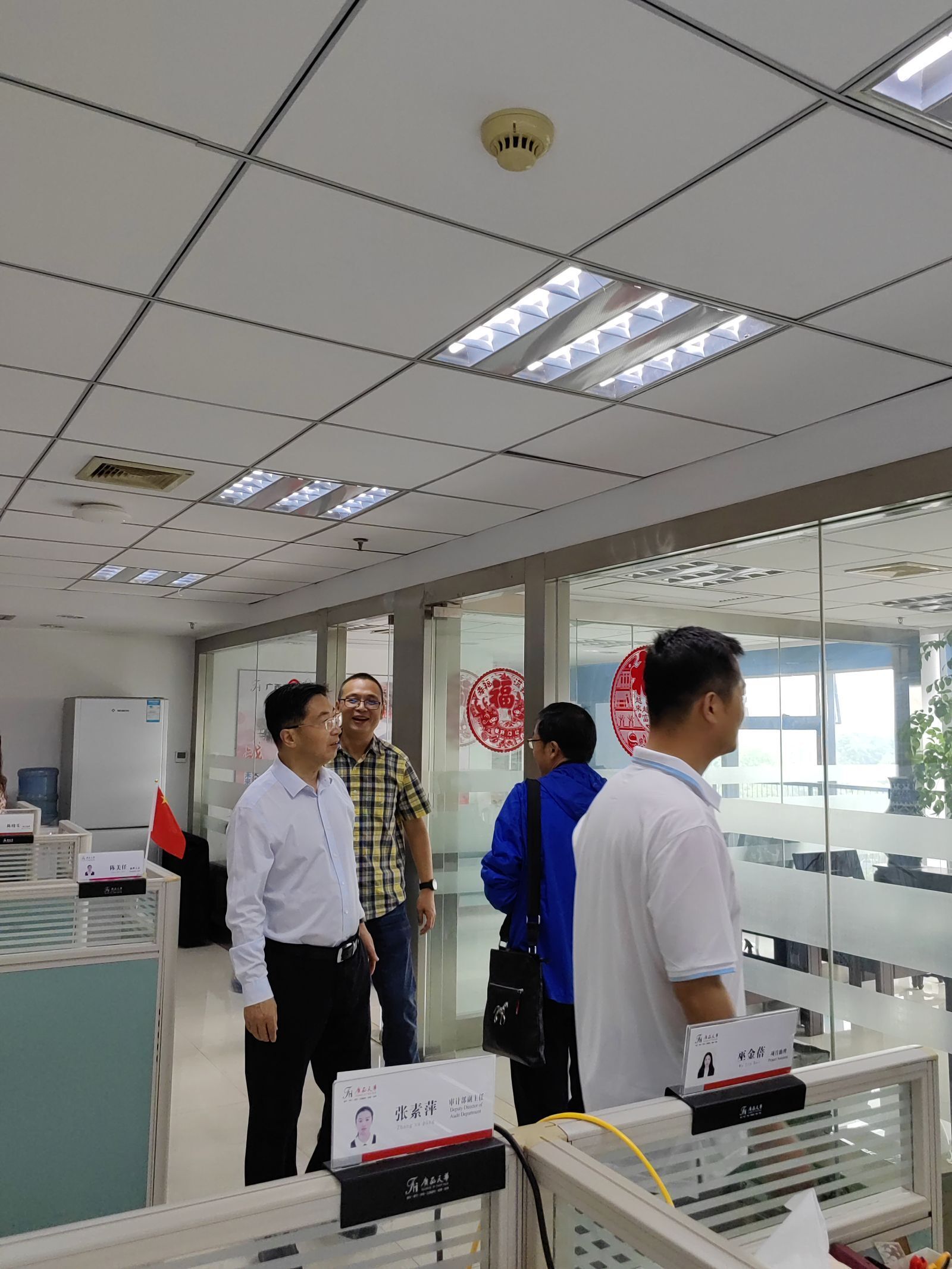 大家對(duì)李建平會(huì)長(zhǎng)一行到訪廣西天華公司表示熱烈歡迎,座談會(huì)前,在吳鴻賓所長(zhǎng)等領(lǐng)導(dǎo)的陪同下,實(shí)地參觀了公司的文化長(zhǎng)廊、黨員活動(dòng)室及辦公環(huán)境,并與員工親切交談,切實(shí)了解員工工作與生活情況。